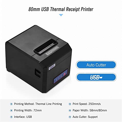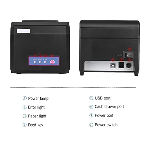 QinWenYan Kwitantieprinter 80mm USB Thermische Kwitantieprinter met Auto Cutter ESC/POS-Commando’s voor Shop (Kleur: Zwart, Maat: One Size)