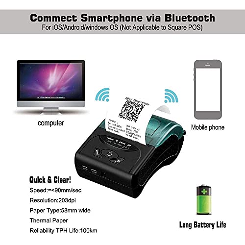 ➼ 58 mm breedte, verbind via BT 4.0, USB Kabel: het ondersteunt 58 mm breedte thermisch papier afdrukken. Max. Afdrukbreedte 40 mm, met een betrouwbaarheid van 100 km afdrukken. Snelheid